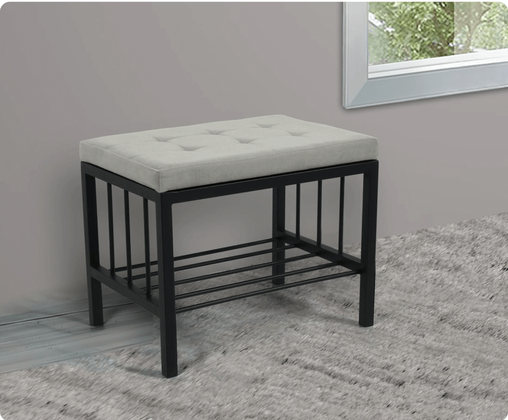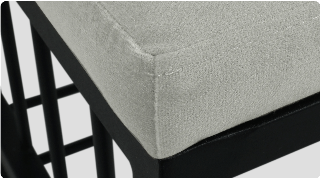 Характеристики Цвет: Серый+белый Размеры (ШxВхГ): 45×45×45см Вес: 5,1 кг Производитель: Россия Гарантия: 12 месяцев Форма поставки: В разобранном виде Материал корпуса: Металл, Фанера Покрытие: Матовое Материал обивки: Велюр искусственный С подлокотниками: Нет Регулируемая спинка: Нет