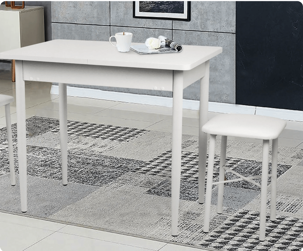 Характеристики стола Цвет: Белый матовый Размеры (ШxВхГ): 86(122)х75×58 см Вес: 19,5 кг Производитель: Россия Гарантия: 12 месяцев Форма поставки: В разобранном виде Материал столешницы: ЛДСП, Пластик Покрытие: Матовое, Полимерное Материал подстолья: ЛДСП Форма столешницы: Прямоугольник Способ раскладывания столешницы: Раздвижной Регулировка по высоте: Да Количество ножек: 4