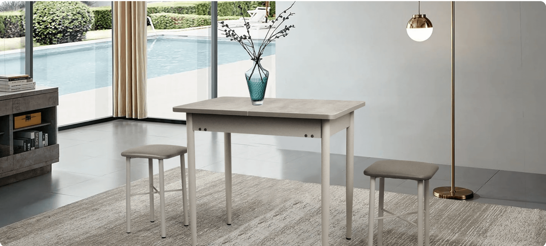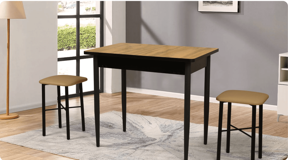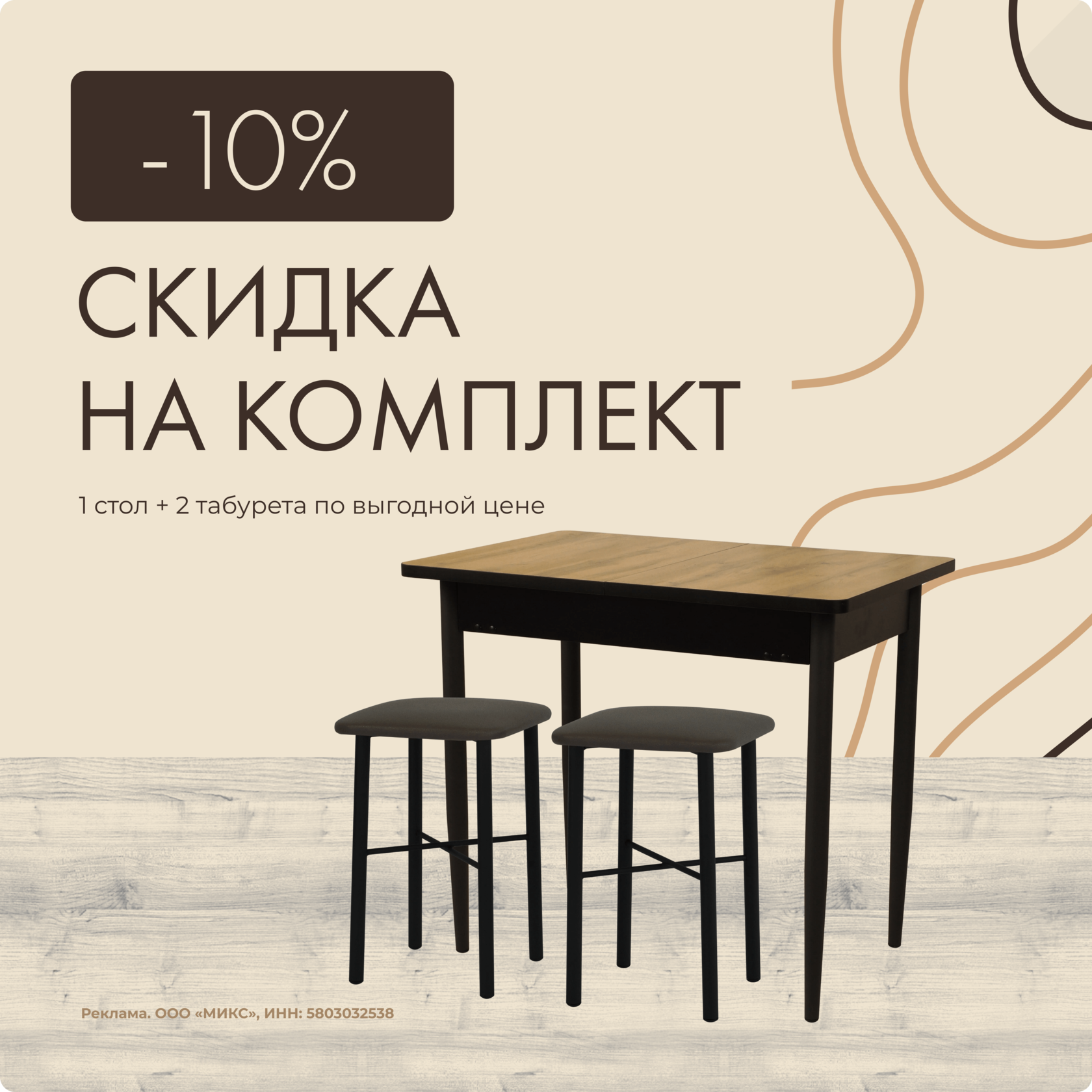 Описание Данный комплект — это стильное и практичное решение для вашего дома, квартиры, дачи, сауны или бани. Качественных материалы, из которых изготовлены стол и стулья, отличаются высокой прочностью и долговечностью. Стол обеденный имеет две возможности длины — 86 см и 122 см, что позволяет вам выбрать оптимальный вариант для вашего помещения. Пластиковые подпятники у стола и стульев не царапают пол и обеспечивают устойчивость стола. Классическая форма стола и изящный безопасный для детей угол столешницы делают его универсальным и подходящим для любого интерьера. Ножки стульев изготовлены из металла и способны выдержать вес до 130 кг. Просты в уходе, от любых загрязнений материал достаточно протереть влажной тряпкой. Ножки выполненные из металла покрашенного порошковой краской, а мягкое сиденье сделает использование ещё комфортнее.