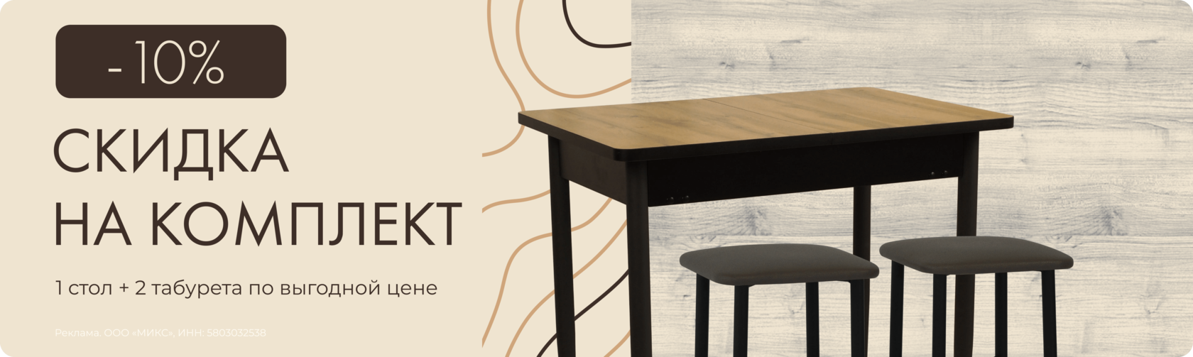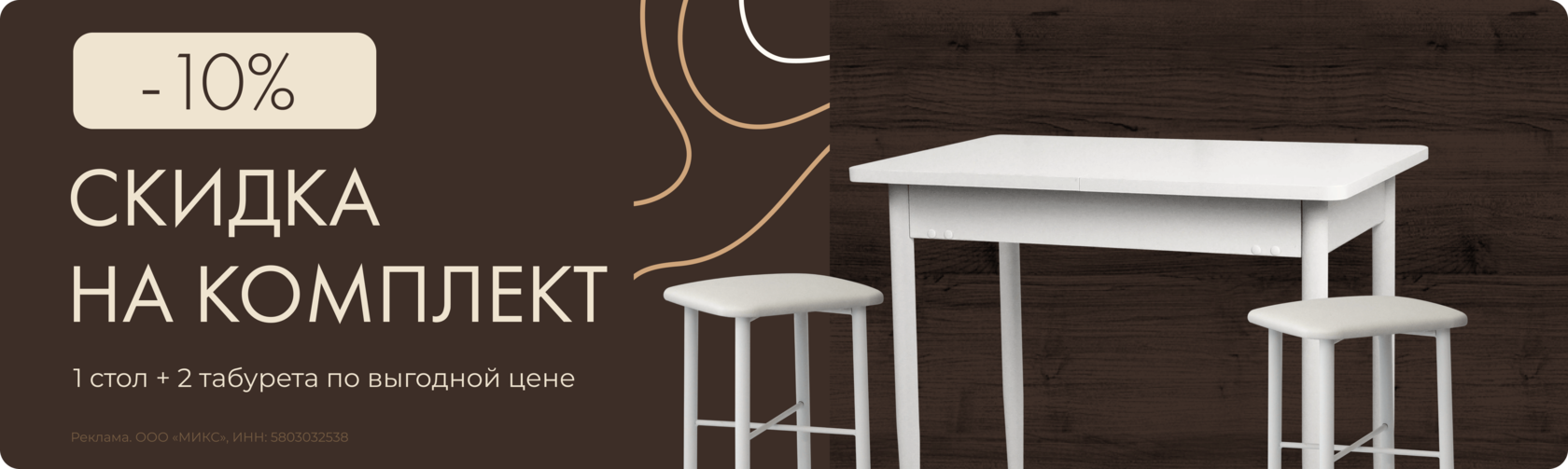Комплектация Стол поставляется в разобранном виде. В комплекте есть подробная инструкция по сборке и необходимая фурнитура. Столешница изготовлена из ЛДСП толщиной 22 мм и покрыта влагостойким пластиком Аркобалено. Ножки выполнены из металла и покрыты порошковой краской.