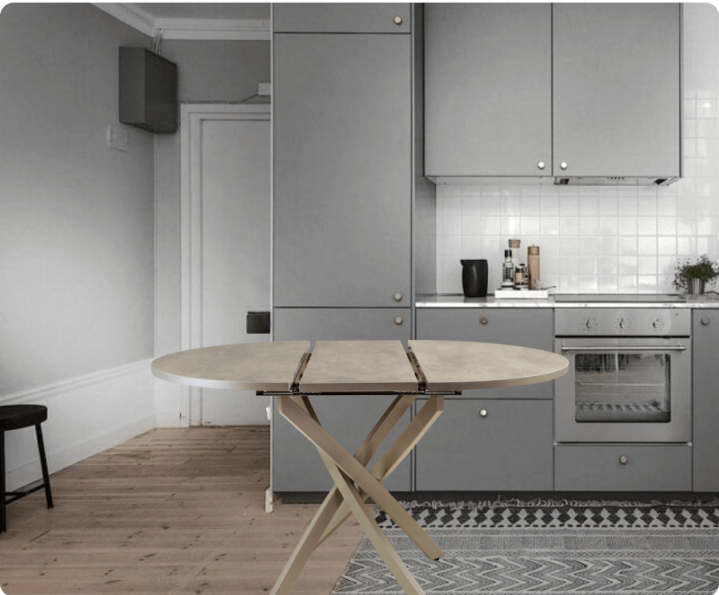 Описание Отличное решение для встречи всей семьёй за обедом в комфортных условиях. Современный дизайн и качественные материалы отлично подойдут к любому интерьеру. Форма ножек стола и их крепления гарантирует хорошую устойчивость, предусмотрели подпятники на ножках стола. Профессиональная покраска металлических ножек — настоящее спасение для хозяев с домашними питомцами. Подстолье выдерживает высокую нагрузку при ежедневной постоянной эксплуатации, а также на крупные праздничные застолья. Конструкция стола позволяет увеличить первоначальный размер (90*90) на 30 см до 120*90 см, что позволит комфортно разместить до 8 человек.